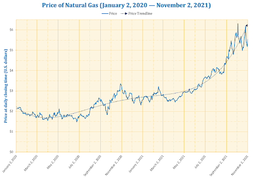[2] Egan, M. [2021] Home heating sticker shock: The cost of natural gas is up 180%, CNN. Available at: https://www.cnn.com/2021/09/28/business/natural-gas-inflation/index.html [Accessed 5 Nov. 2021]