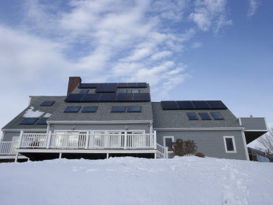 Everyone asks about snow: Yup, the panels get covered with snow during snowstorms and produce very little power when that happens (if it is less than 6 inches or so, they do still produce power from the light that shines through the white stuff). However, they are mounted at a 45 degree angle, and if we get more than about 2 hours of strong sunshine after the storm, the snow slides right off.