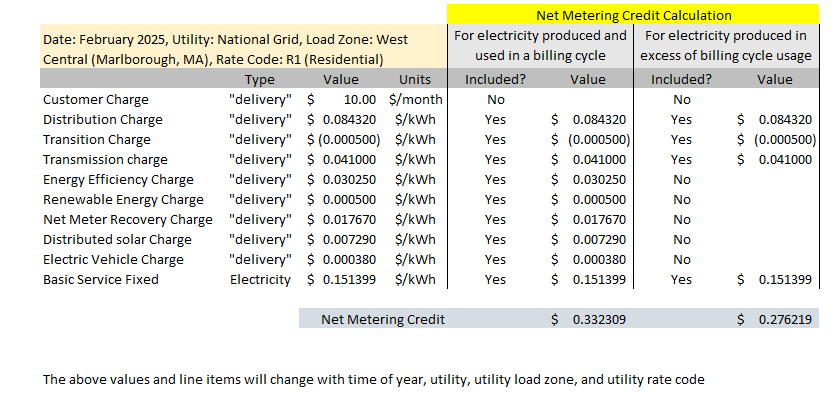 These credits are slightly less than the full retail rate, since certain smaller charges are excluded. Still, they offer significant long-term savings by offsetting various parts of your electric bill.  Note on System Size: There used to be some differences between systems under 10kW and those between 10kW–25kW, but under the current rules, systems under 25kW (AC) are treated the same for net metering credit purposes.