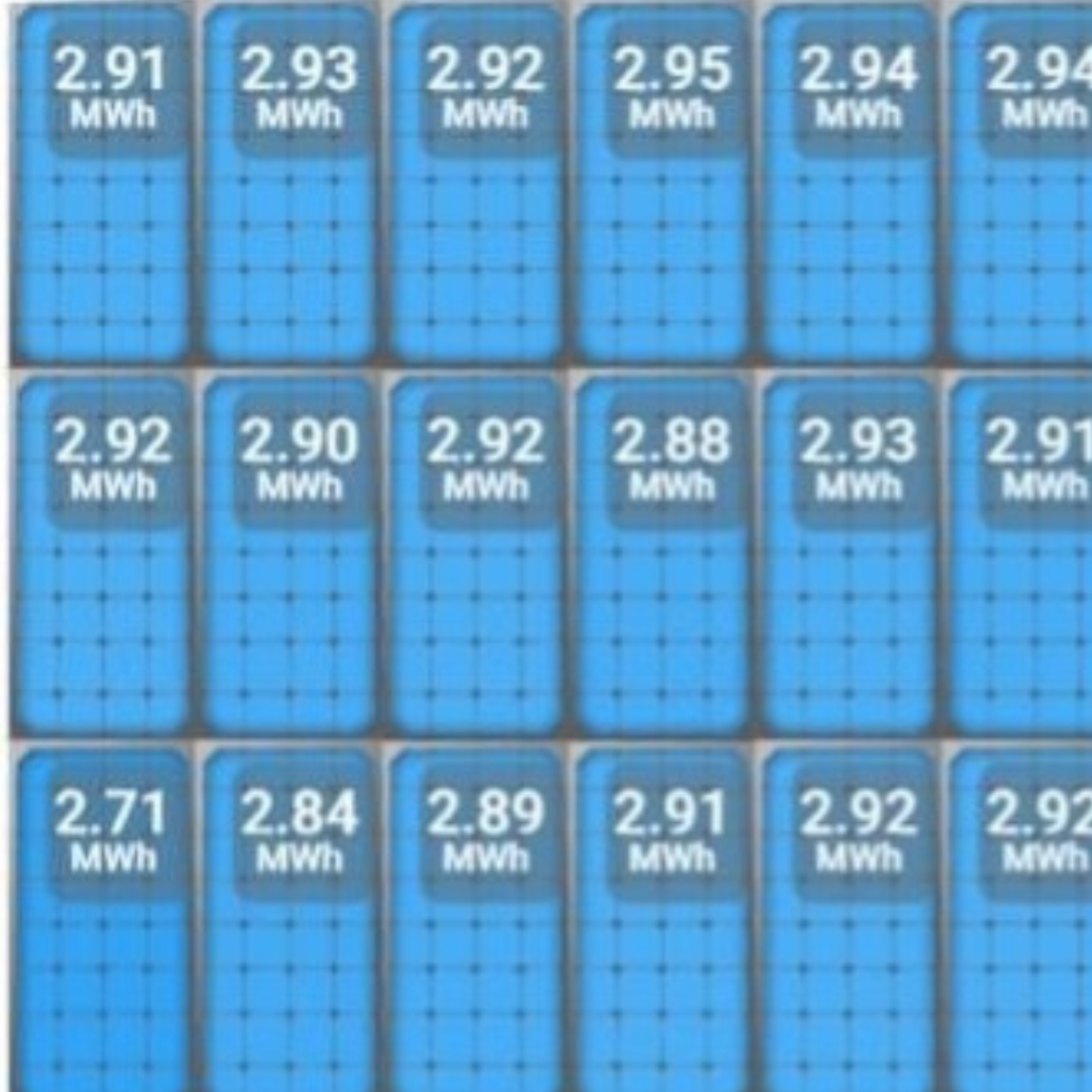 Notice that the panel at the lower left of the solar panels installation has produced 2.71 Megawatt-hours (2,710 kilowatt-hours) while the panel at the upper right has produced 2.97 Megawatt-hours (2,970 kilowatt-hours). While that difference appears small, it’s actually a 10% swing (based on the 2.71 MWh panel).