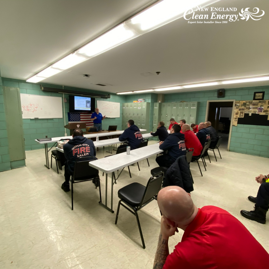 At New England Clean Energy, we take safety seriously—especially when it comes to the brave first responders who put their lives on the line every day. Recently, Mark, our founder and president, began delivering crucial training sessions to firefighters, focusing on the building, electrical, and fire codes that govern solar panels and home batteries. These codes are designed not only to protect homes but also to protect the safety of first responders who may need to act in emergency situations.Mark’s training dives deep into key safety measures outlined in the National Electrical Code (NEC) and local Massachusetts fire and building codes, specifically around solar panel installations and the growing use of home batteries. The goal is simple: ensure firefighters are well-prepared and knowledgeable about how these systems work, how they are safely installed, and how they can navigate a scene without risk.