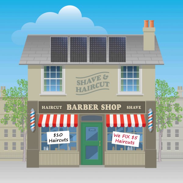 Let me tell you one of my favorite jokes. A barber with a brisk business charged $10 for a haircut. One day, a new barber set up shop across the street and put a big sign in the window reading: “$5 haircuts”. I asked the first barber why he wasn’t worried about being undercut by the competition. He smiled, picked up a sign of his own and put it in the window. It read: “We fix $5 haircuts.”