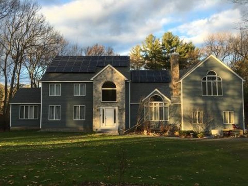 This Acton, MA homeowner is covering 94% of his electric bills with a solar energy system that straddles his multi-roofed home. The system has 28 Canadian Solar panels and SolarEdge inverter technology.