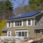 Sleek solar panels form a sheet of clean energy capacity on this roof. The system was installed as part of the Solarize Acton program and features 22 Canadian Solar 245-watt solar panels and a Solectria PVI-5000 string inverter.