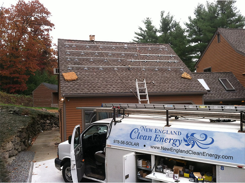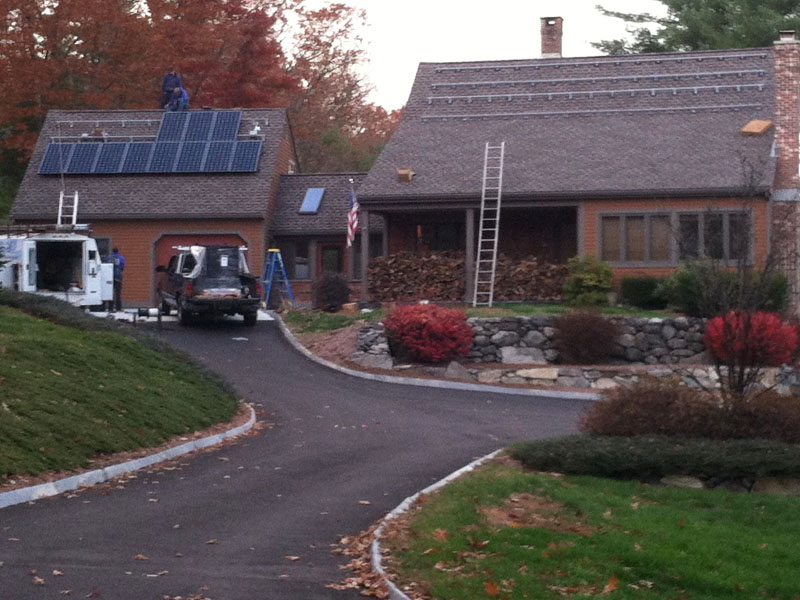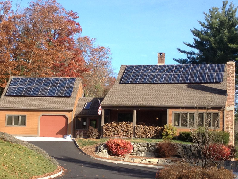 This pretty system has 40 SunPower AC panels, each rated at 245 watts for a total of 9,800 watts.